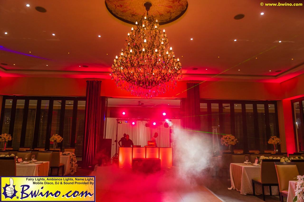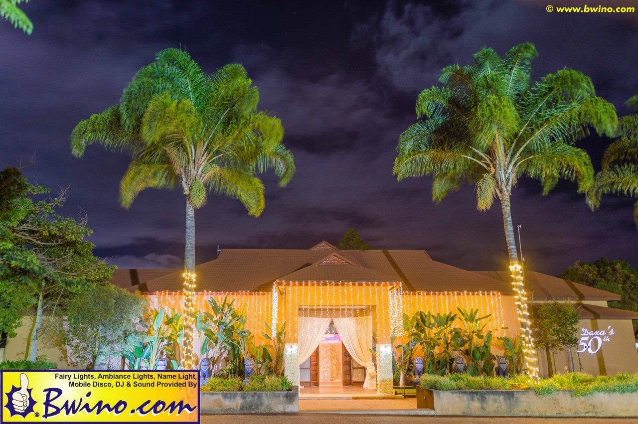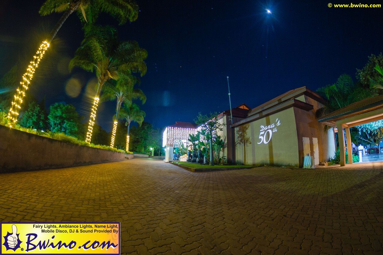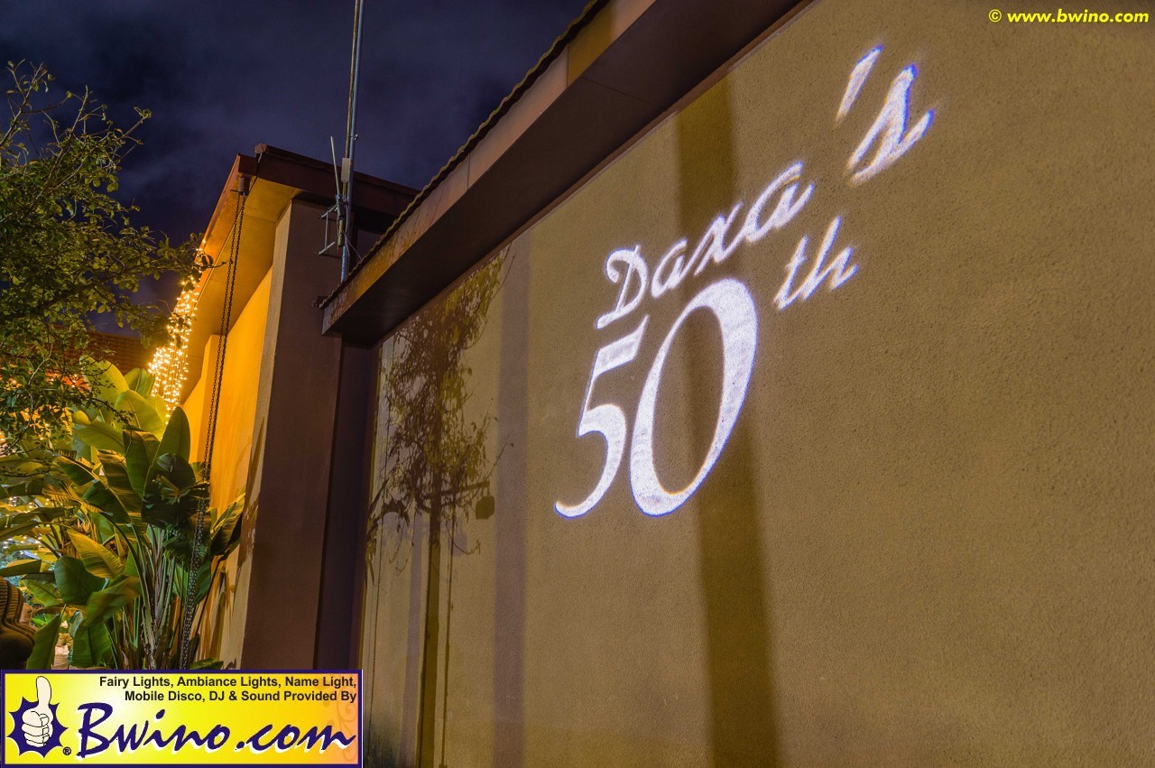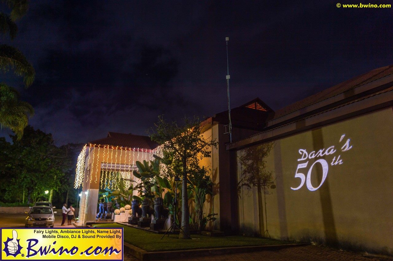 We provided Fairy Lighting, Ambiance Light, Name Light, Low Fog Machine Mobile Disco and DJ Services at a 50th Birthday Party Dinner.