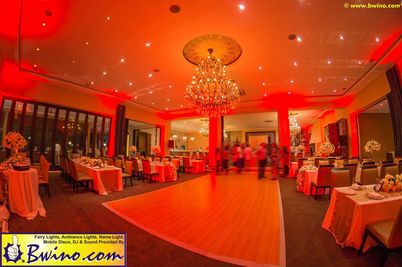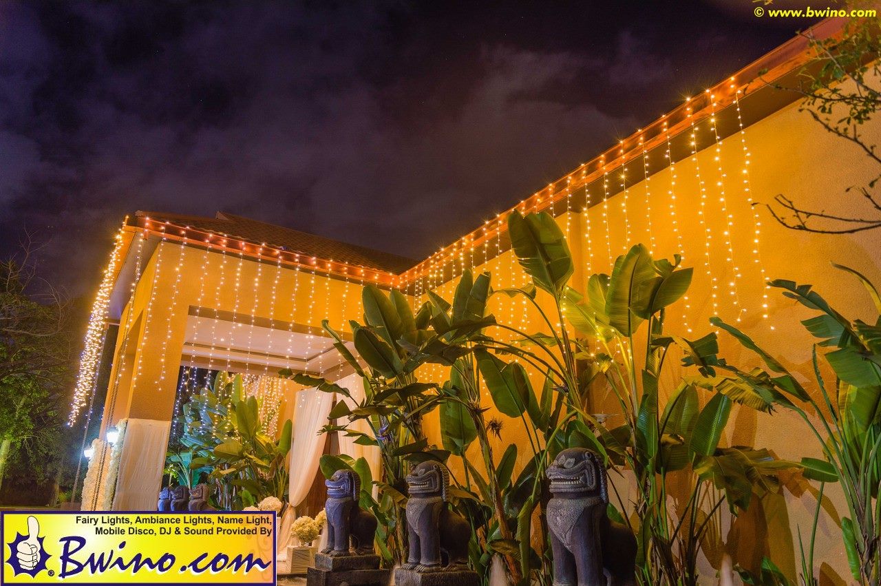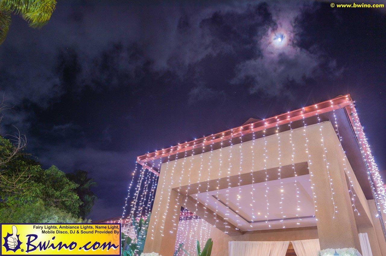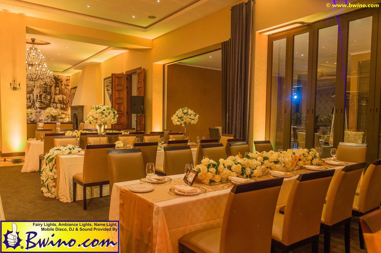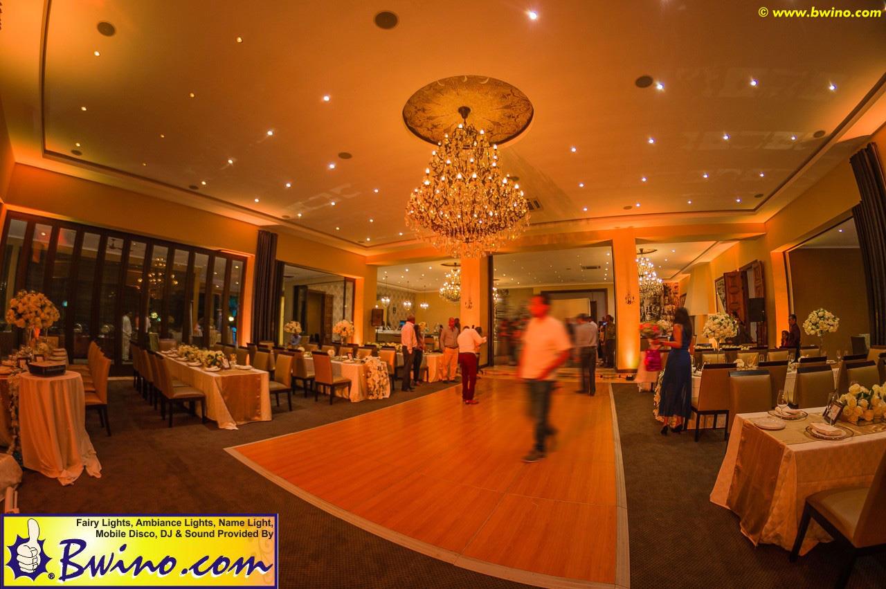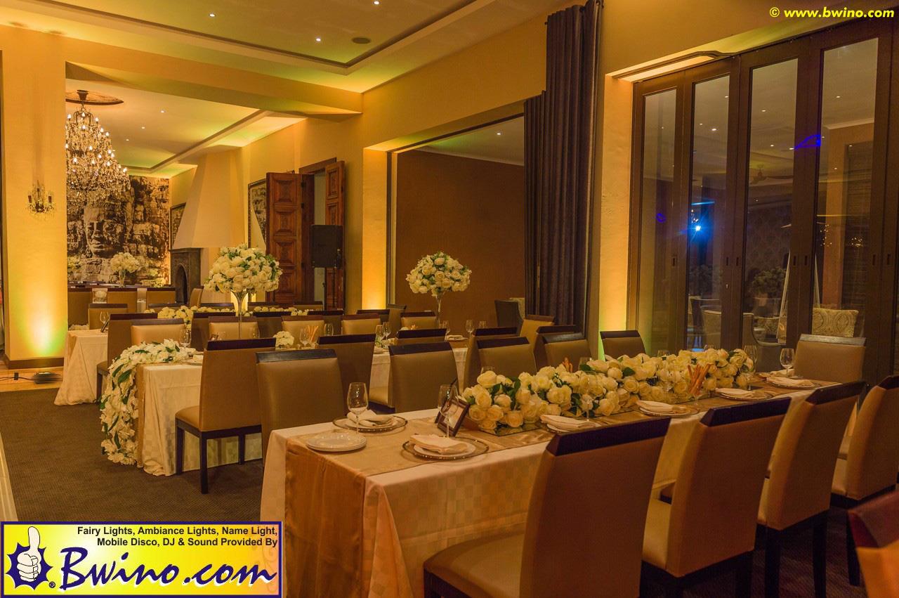 We provided Fairy Lighting, Ambiance Light, Name Light, Low Fog Machine Mobile Disco and DJ Services at a 50th Birthday Party Dinner.